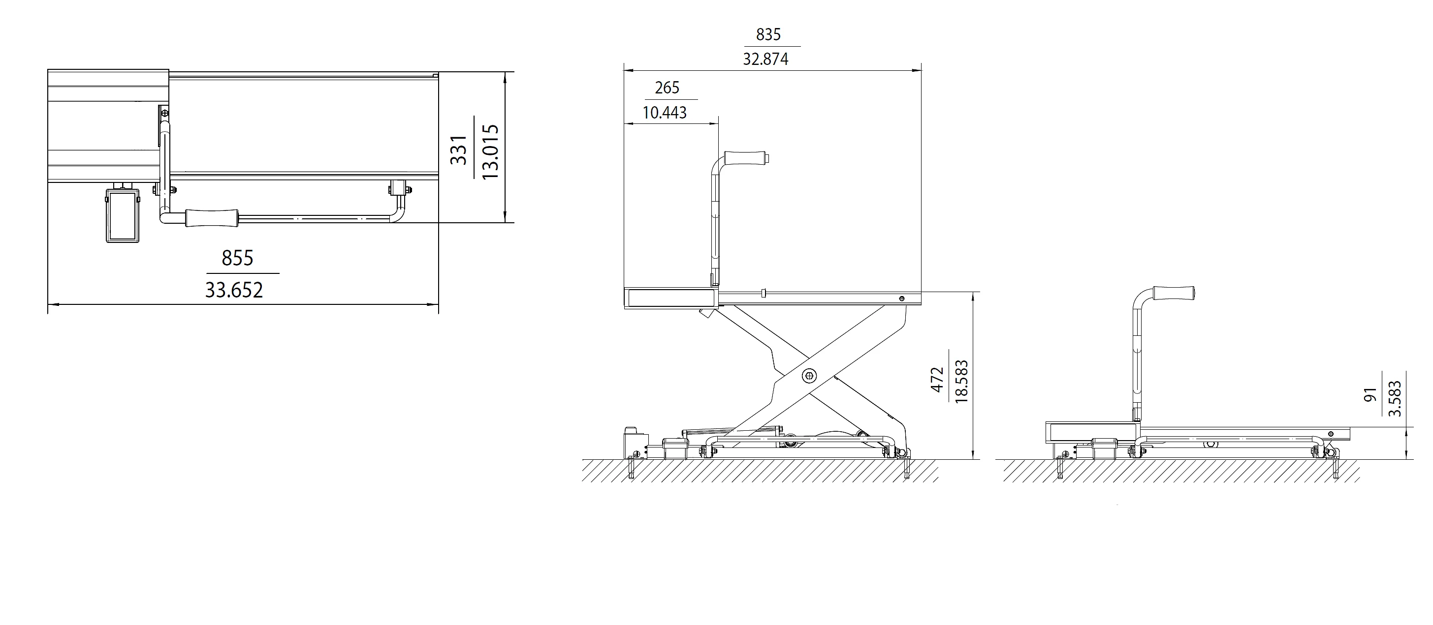 • Low height for easy rolling of heavy tires onto the lift
