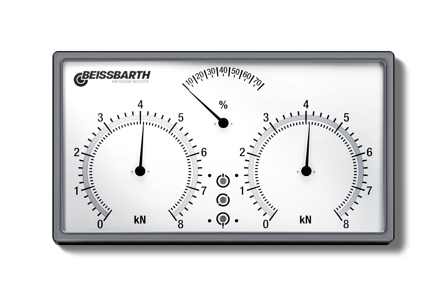 The classic way to display braking forces. Consisting of two pointers, each with a scale up to 8kN for left and right brake force as well as a difference display in percent. Includes wall bracket, mounting material, power supply unit and 15m connection cable. No additonal accessories required.