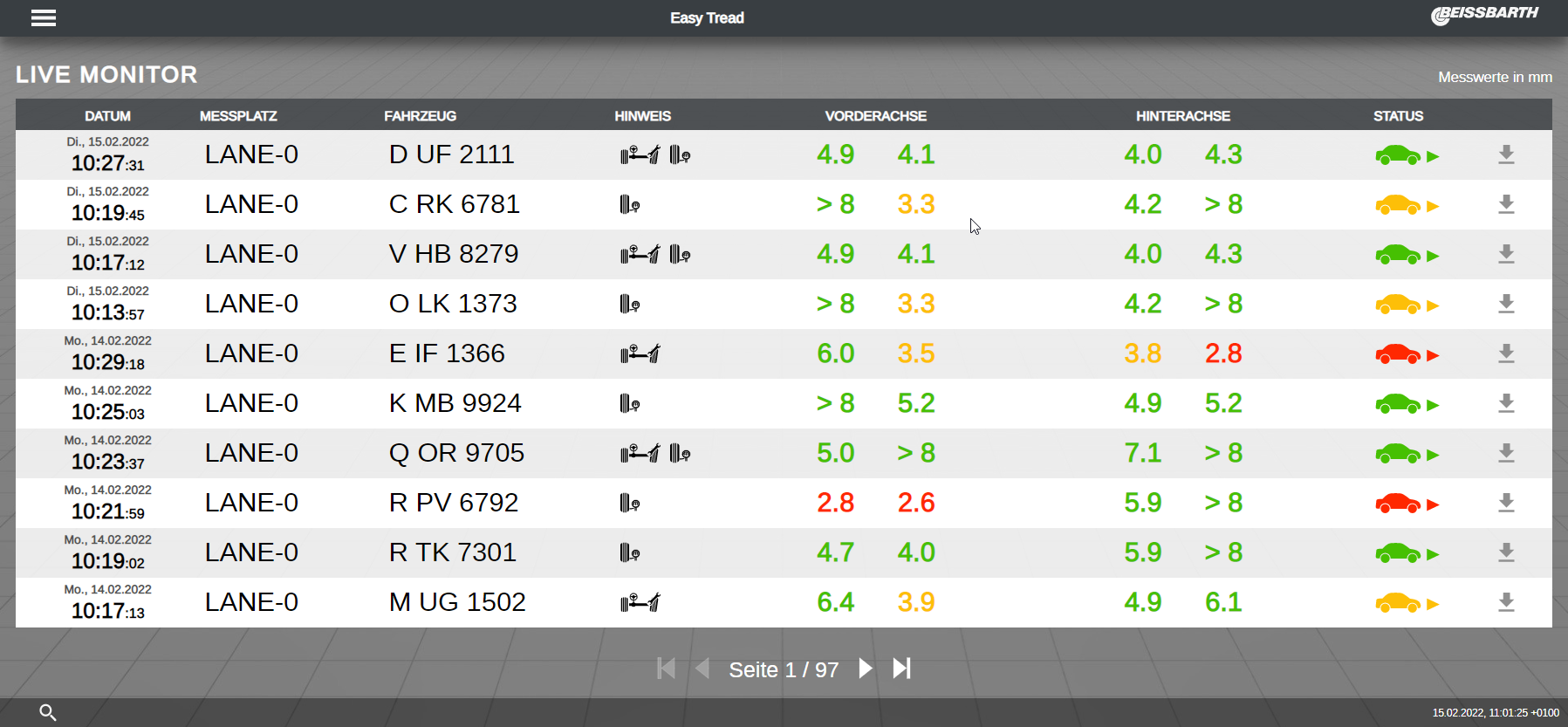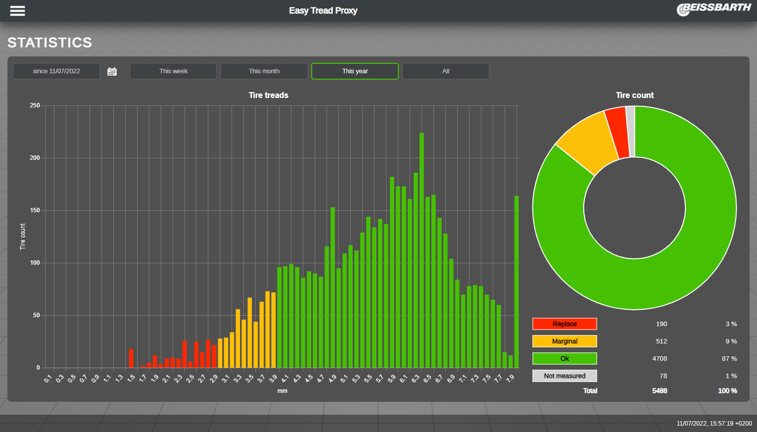 - Automatic tyre wear and diagnosis within seconds