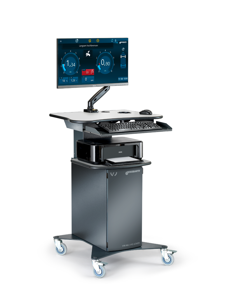 The VAS 6360A brake tester handles all VW and Audi vehicles and is designed from high quality components to ensure robustness and long product life even under the harshest environments. The new version of the VAS6360 additionally provides the user with an intuitive and fast software. The modular approach further allows easy extensions to complete test lanes at any time. Next to the classical noise detectors, side slip plates and suspension tester, the VAS 6360A brake tester can now also integrates seamlessly into the VAS 741 083 automatic tyre diagnosis system. This not only increase your tyre sales but also generates more wheel alignment service opportunities.
