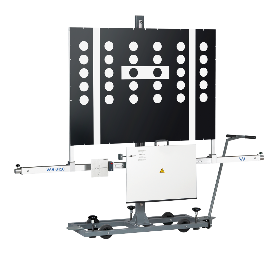 Il VAS 6430/1A costituisce il basamento dell'attrezzatura di calibrazione VAS 6430. Tutti gli adattatori per la calibrazione dei sistemi di assistenza alla guida rivolti in avanti per il Gruppo VW vengono montati sul basamento VAS 6430/1A.