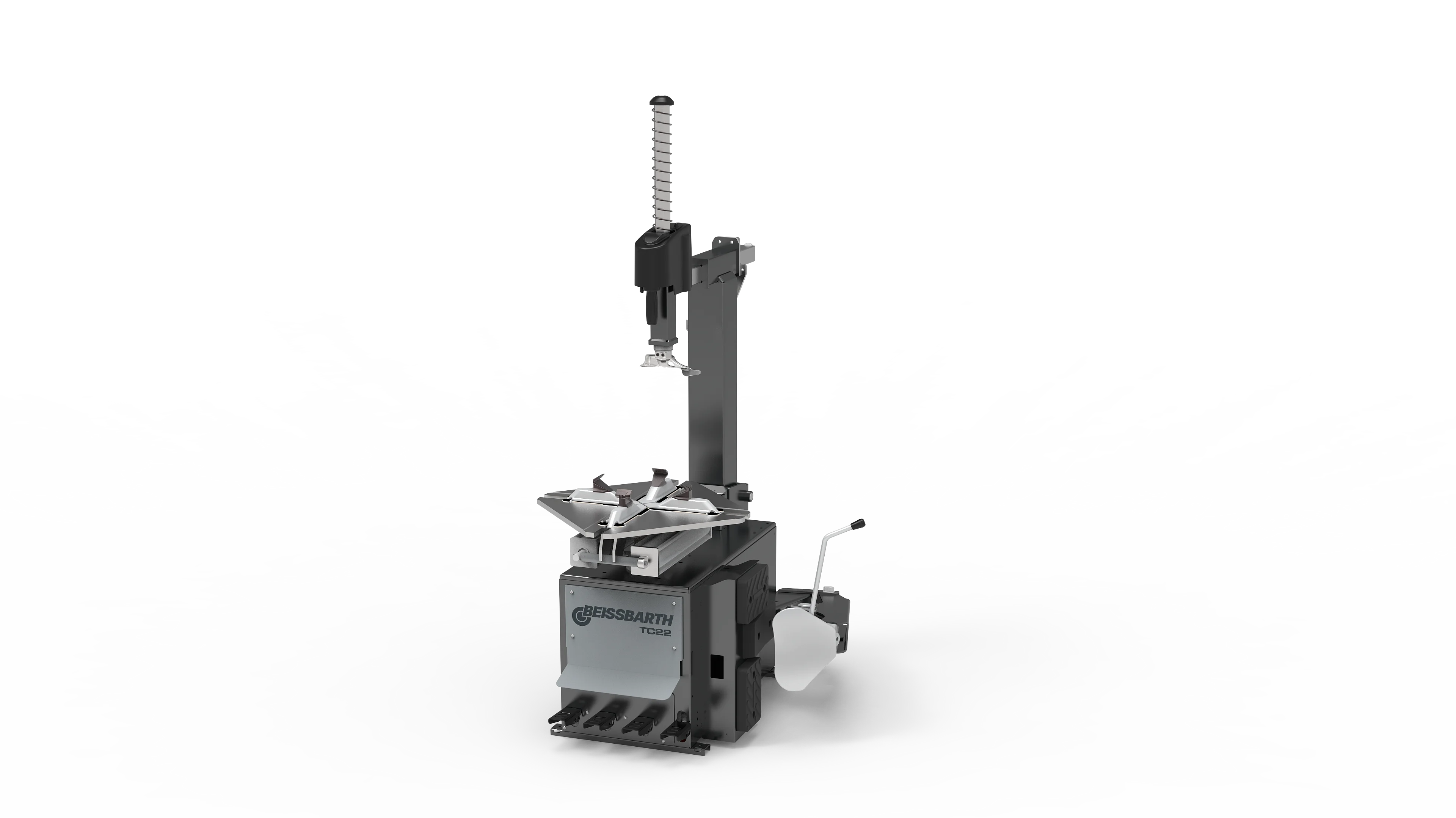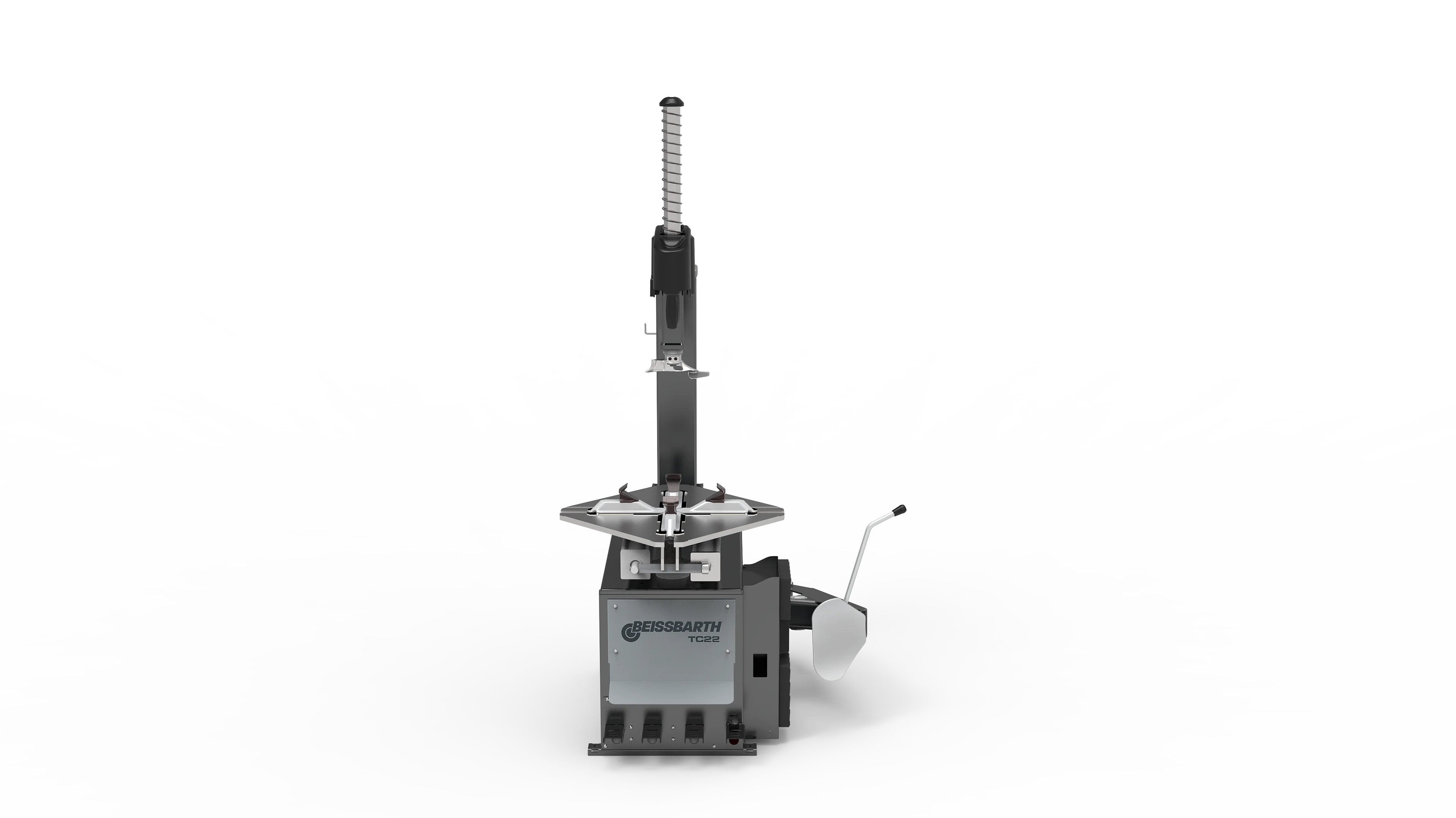 - Pedalsteuerung für Drehung, Abdrückschaufel, Säulenneigung und Spannklauen