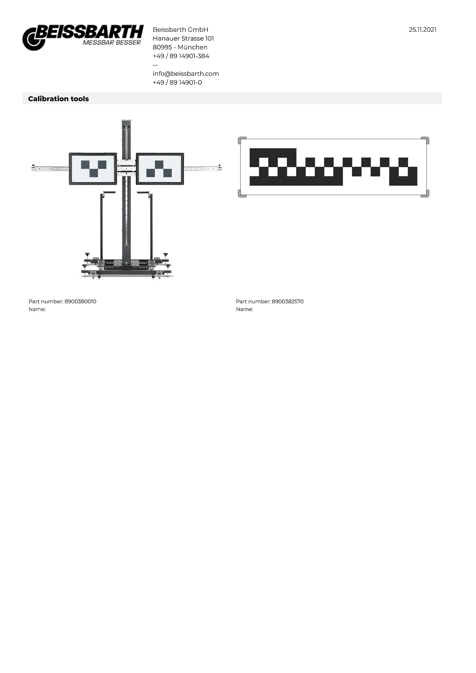 - Höhe, Abstand und Mittenversatz zur Positionierung der Kalibriertafeln