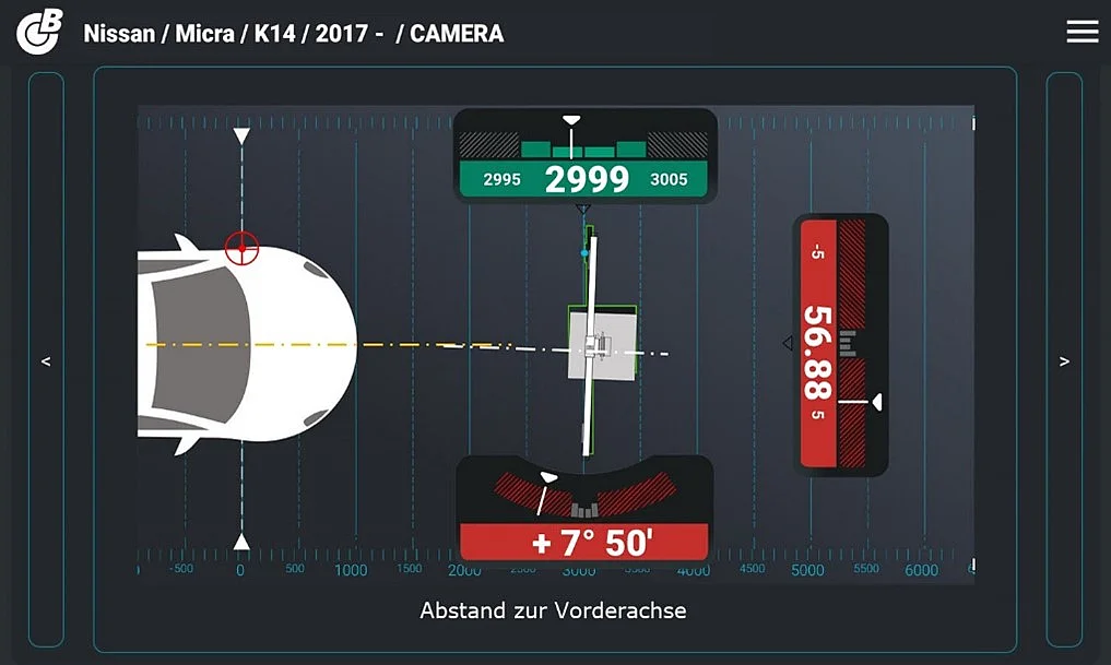 - Echtzeit-Positionierung der ADAS-Vorrichtung nach OEM-Spezifikationen (Höhe, Abstand, Versatz, Gierwinkel)