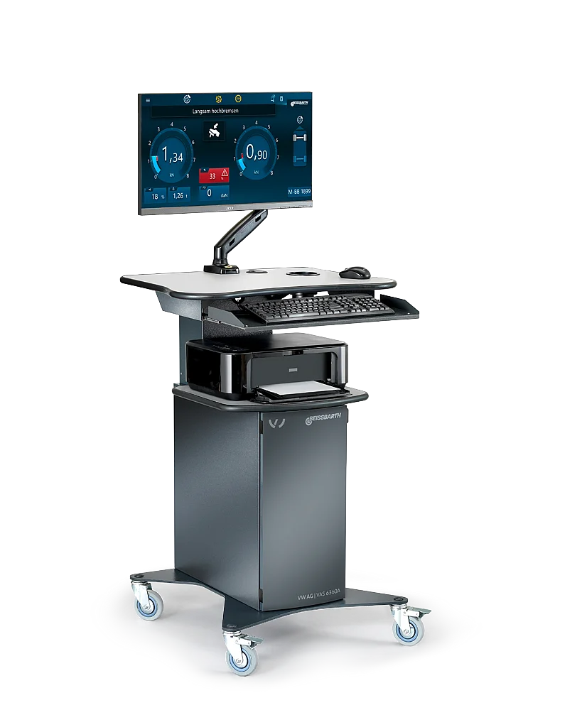Der VAS 6360A Bremsenprüfstand ist für den Einsatz für alle VW und Audi Fahrzeuge konzipiert und setzt dabei vor allem auf hochwertige und langlebige Komponenten sowie auf schnelle und intuitive Software. Ein modularer Ausbau zur kompletten Prüfstraße ist jeder Zeit möglich. Neben den klassischen Geräuschdiagnosetestern, Fahrwerkstestern und Spurplatten, lässt sich der VAS 6360A Bremsenprüfstand auch optimal mit der automatischen Reifendiagnose VAS 741 083 integrieren. So profitieren Sie auch zusätzlich von steigenden Reifenverkäufen und Fahrwerkseinstellungen.