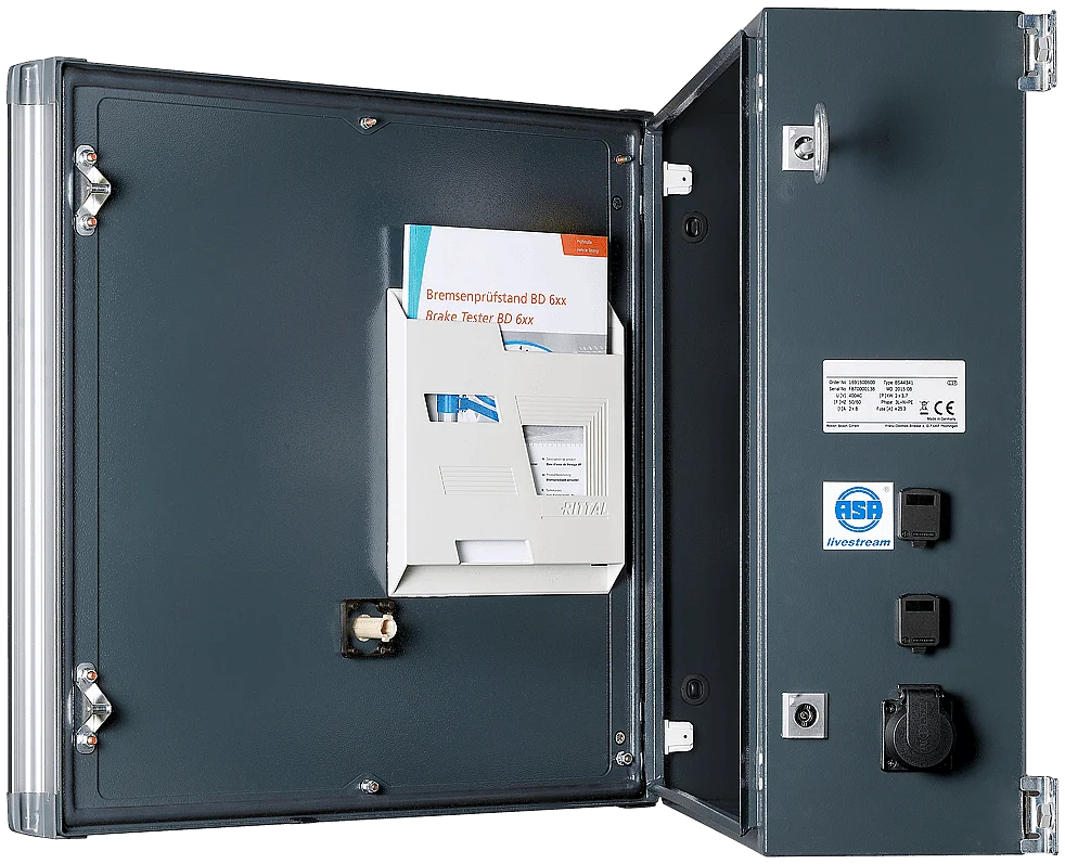 - 230-V-Steckdose am Prüfgerät für Laptop von Servicetechniker und Prüfer (Separate Zuleitung durch autorisierten Techniker notwendig)