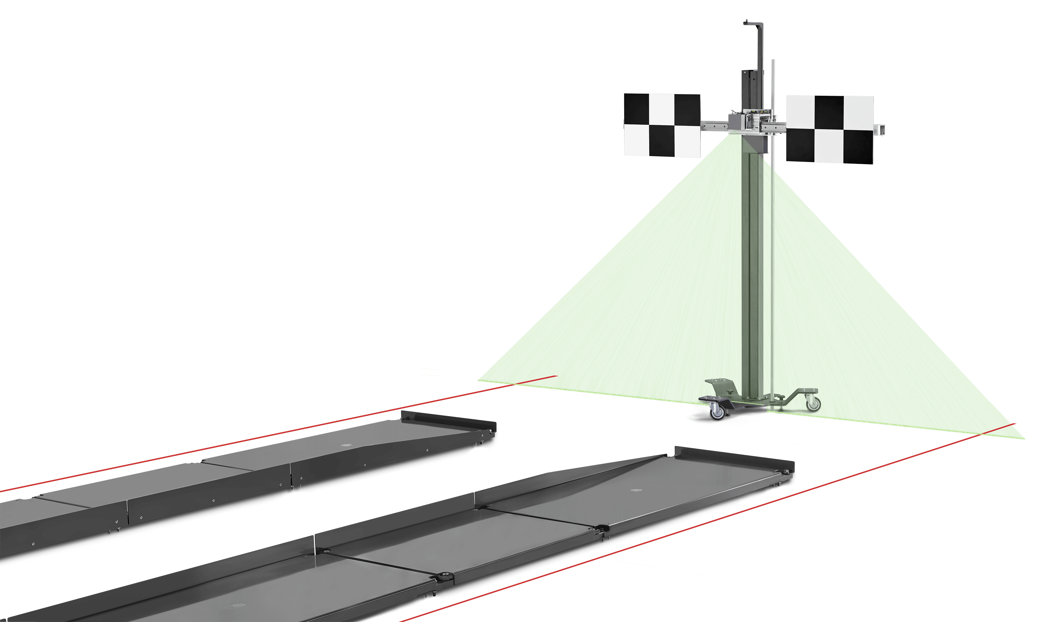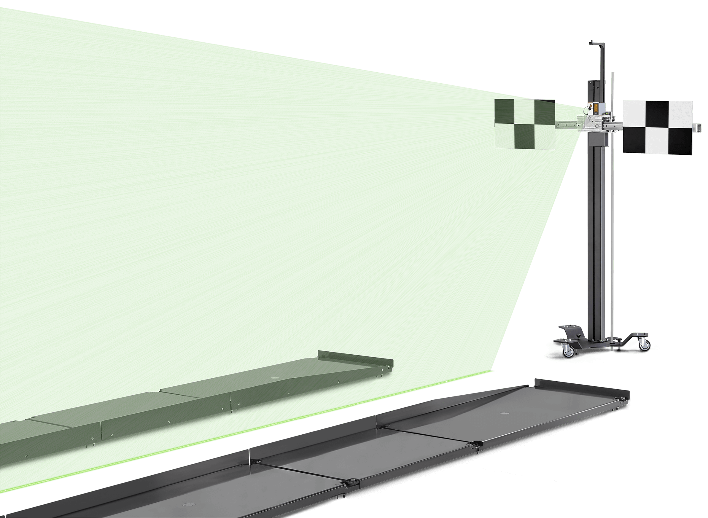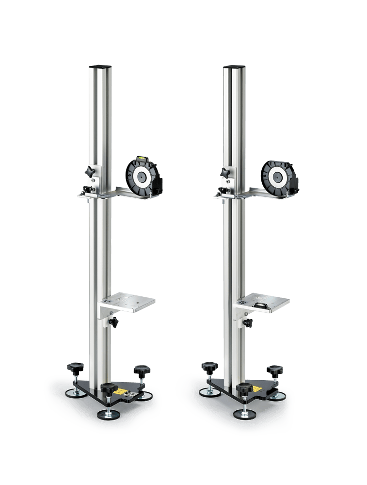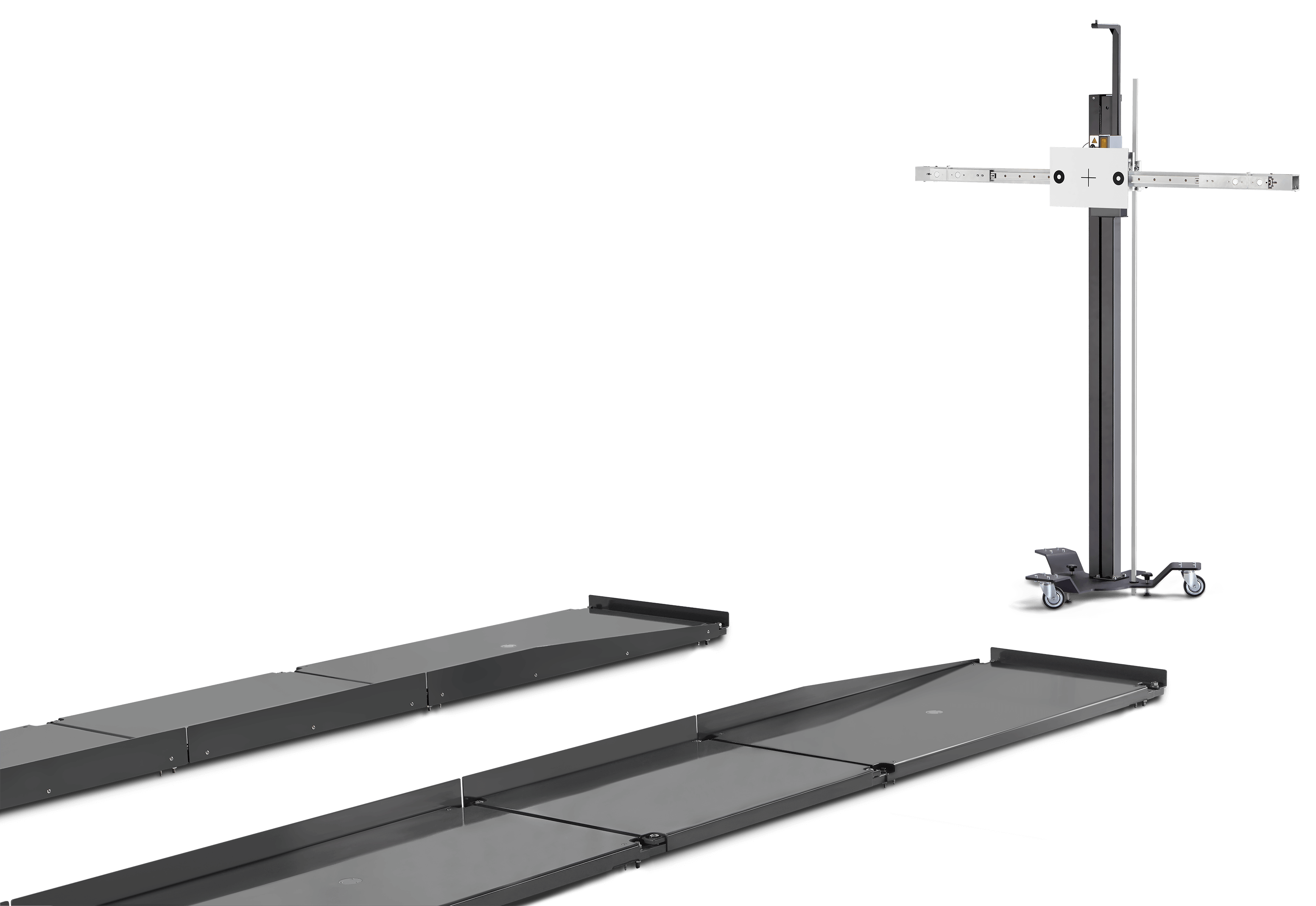 - 4-Rädriger Fahrwagen mit stabiler Säule zur Aufnahme des Messbalkens