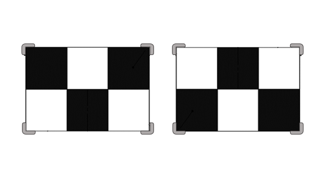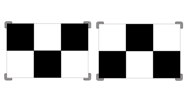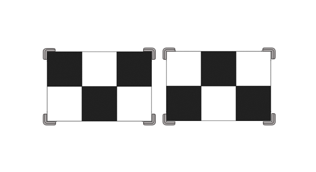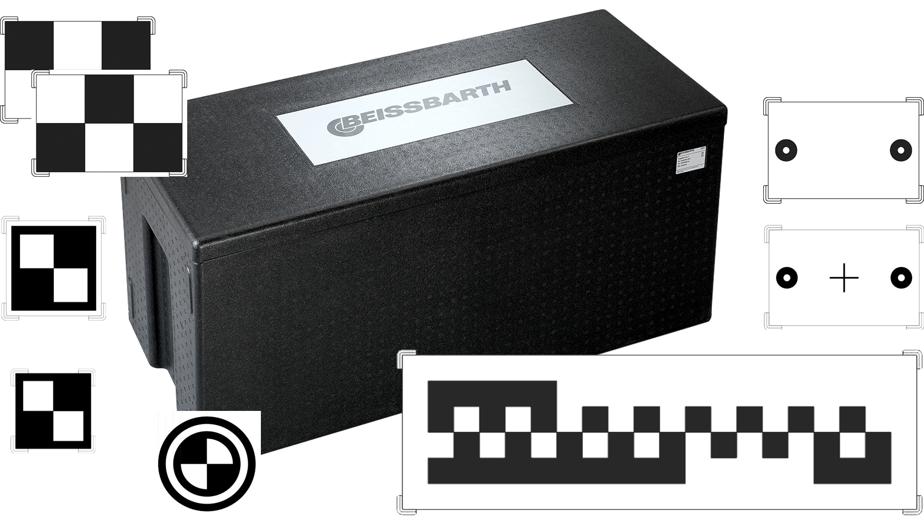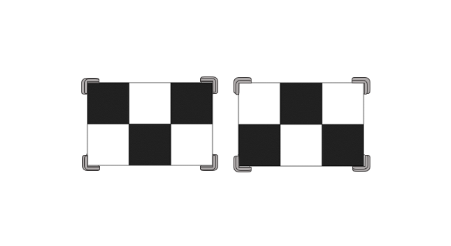 - Höhe, Abstand und Mittenversatz zur Positionierung der Kalibriertafeln