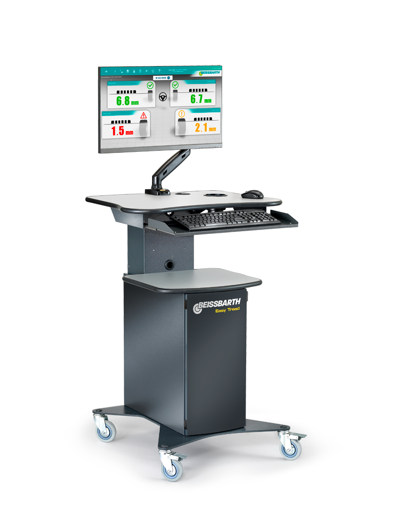 Mit der Profiltiefenmessung kann das Reifen und Servicegeschäft in der Werkstatt besser gesteuert werden, zudem werden abgefahrene Reifen frühzeitig erkannt. Ungleichmäßig abgefahrene Reifenprofile sind für die Werkstatt ein Hinweis, die Fahrwerkseinstellung zu überprüfen, und dem Kunden ggf. eine Fahrwerkvermessung vorzuschlagen. Beissbarth Easy Tread liefert einen Beitrag zur Umsatz- und Margensteigerung im Betrieb.