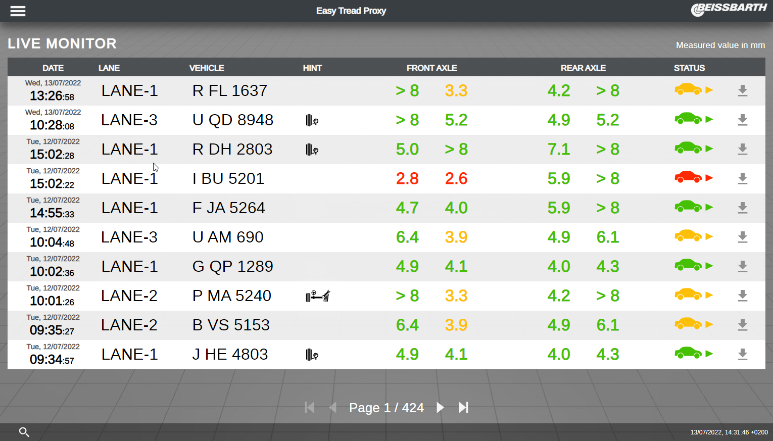 - Live Ansicht aller Überfahrten mehrerer Easy Treads im selben Werkstattnetz