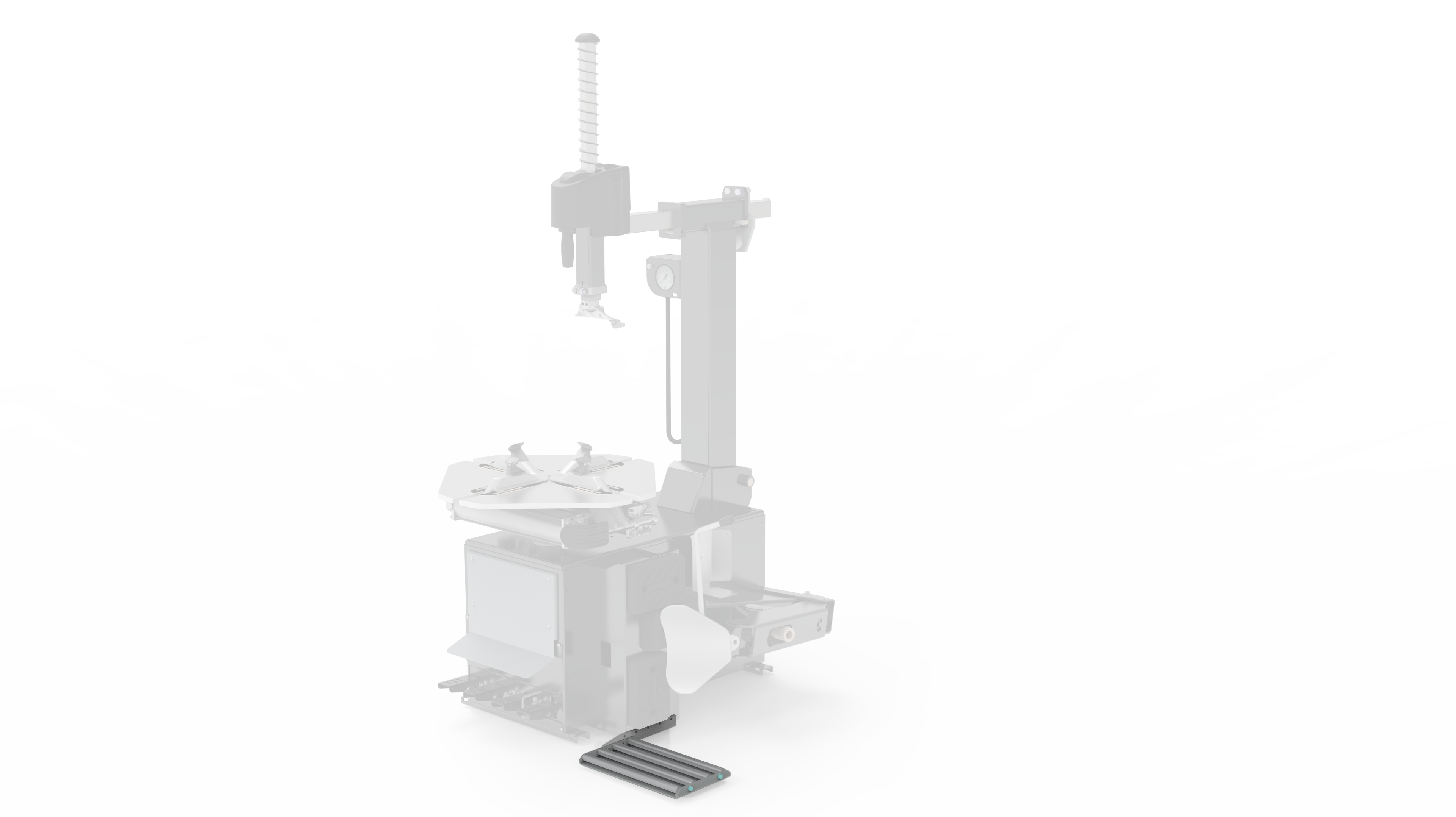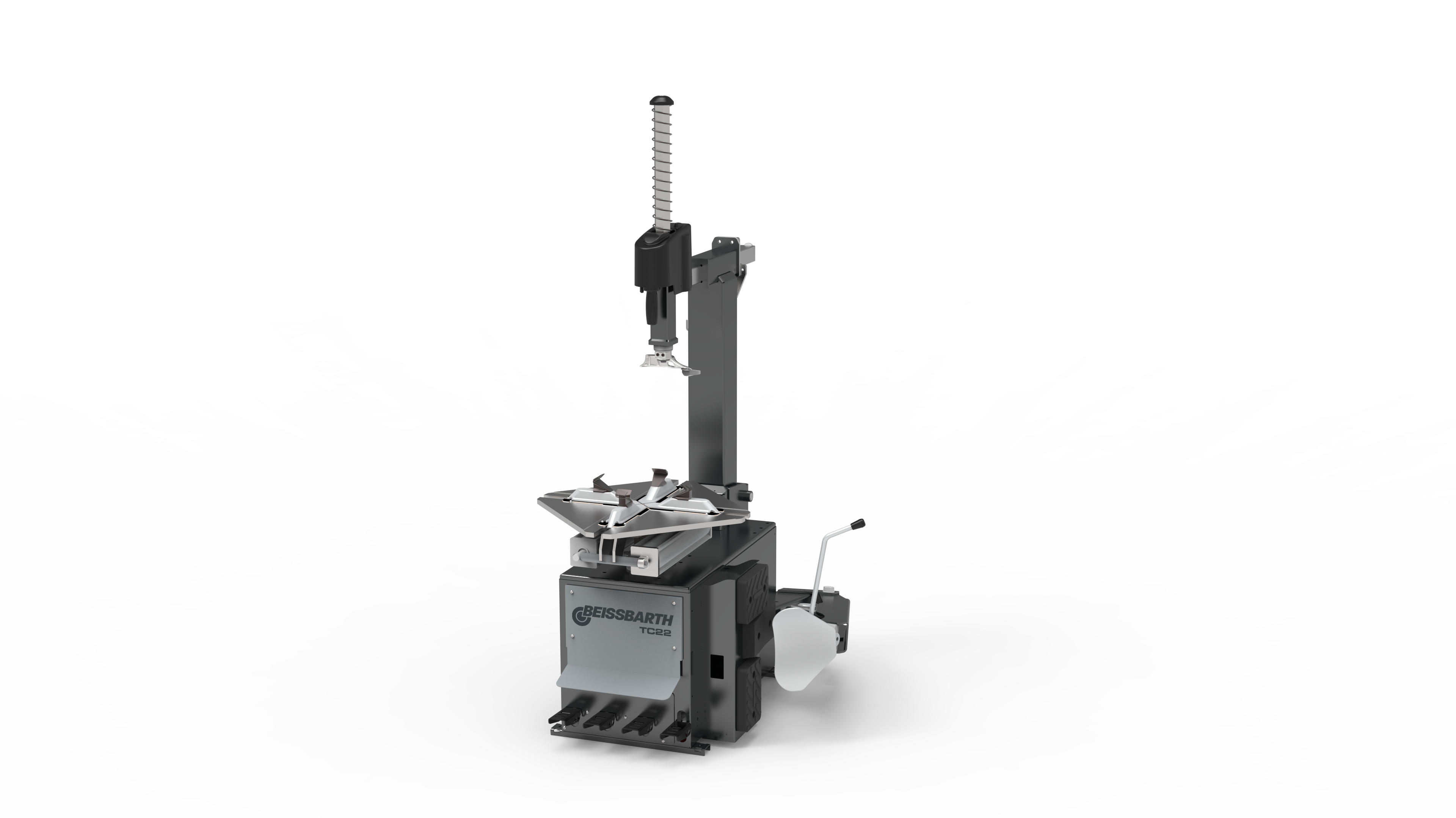 - Pedalsteuerung für Drehung, Abdrückschaufel, Säulenneigung und Spannklauen