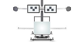 Das Achsmessgerät ersetzt Maßbänder und Schlagschnüre, da es die Position des FAS-Kalibriertools zum Fahrzeug über Kameras ermittelt. Das spart nicht nur Zeit, sondern ist auch hochpräzise. Denn durch das Achsmessgerät werden Ungenauigkeiten durch Aufspannfehler oder Felgenschlag kompensiert. Das reduziert einerseits Raum für Fehler und dokumentiert andererseits, was und wie genau das Fahrzeug kalibriert wurde gegenüber Dritten (wie bspw.Versicherungen).