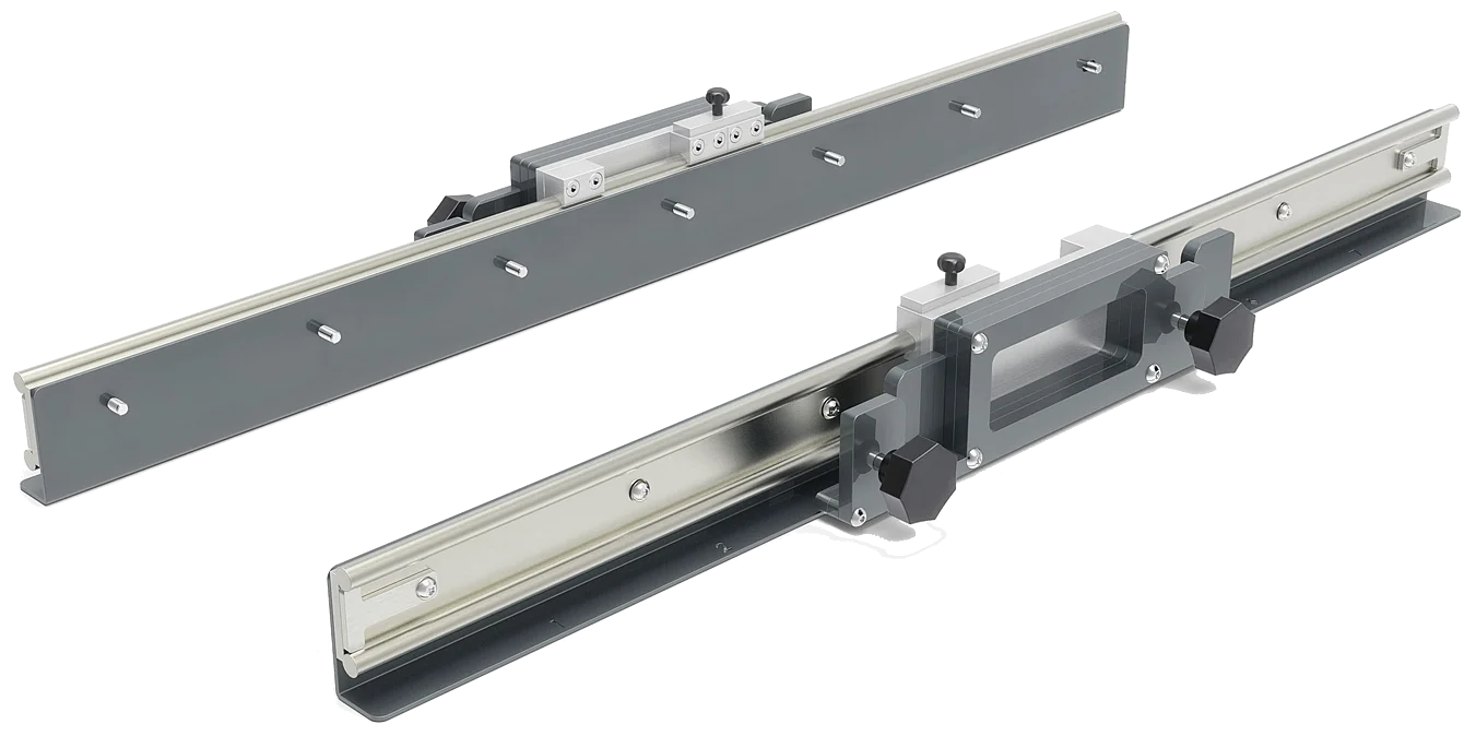 • Position des Messwertaufnehmers ist über ein Schienensystem in Fahrzeugrichtung bewegbar