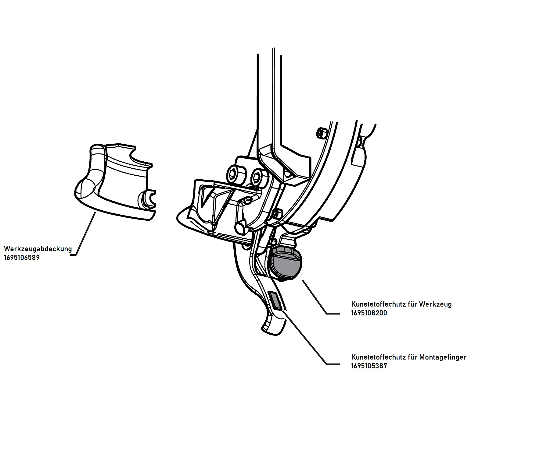 Kunststoffschutz für hebelloses Montagewerkzeug | links | 5-tlg. | für MS 650S V8, MS 670S V8 | 1695106589